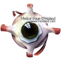 Fästen av vänster ögas muskulatur