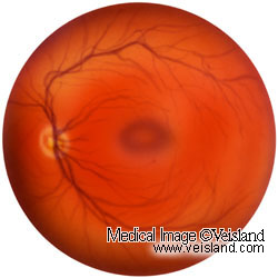 Ögonbotten i vänster öga sedd framifrån genom pupillen